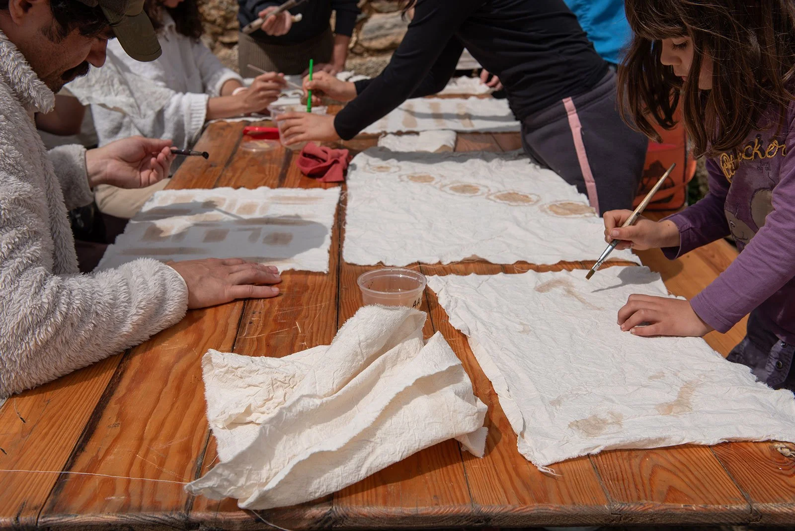 Durante o mês de abril, em Idanha-a-Velha, toma forma uma oficina de tratamento e transformação de plantas no centro da aldeia. Parte-se do pretexto das técnicas de tinturaria e das impressões têxteis com plantas, praticadas por Anafaia Supico há anos, para abrir um espaço de encontro diário — um lugar onde se experimentam práticas ligadas à botânica e aos usos das plantas nos quotidianos (alimentação, medicina, decorativo), mas também nas práticas sociais (história, ciências, tecnologias).