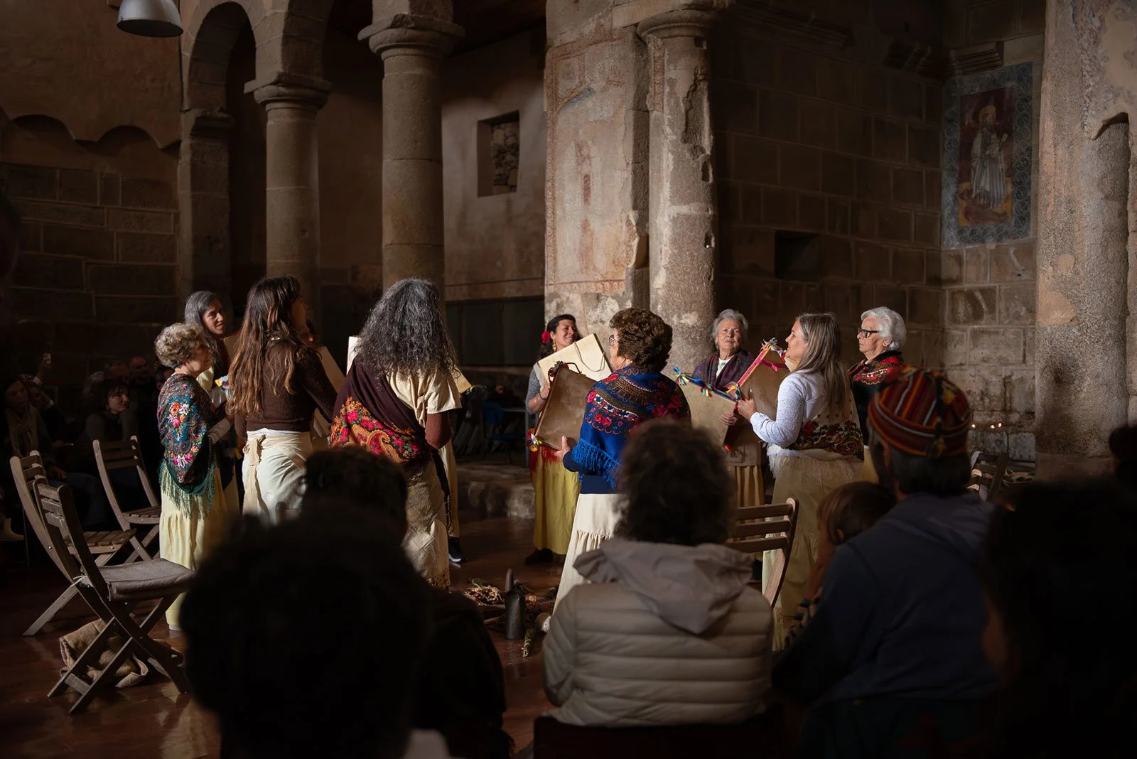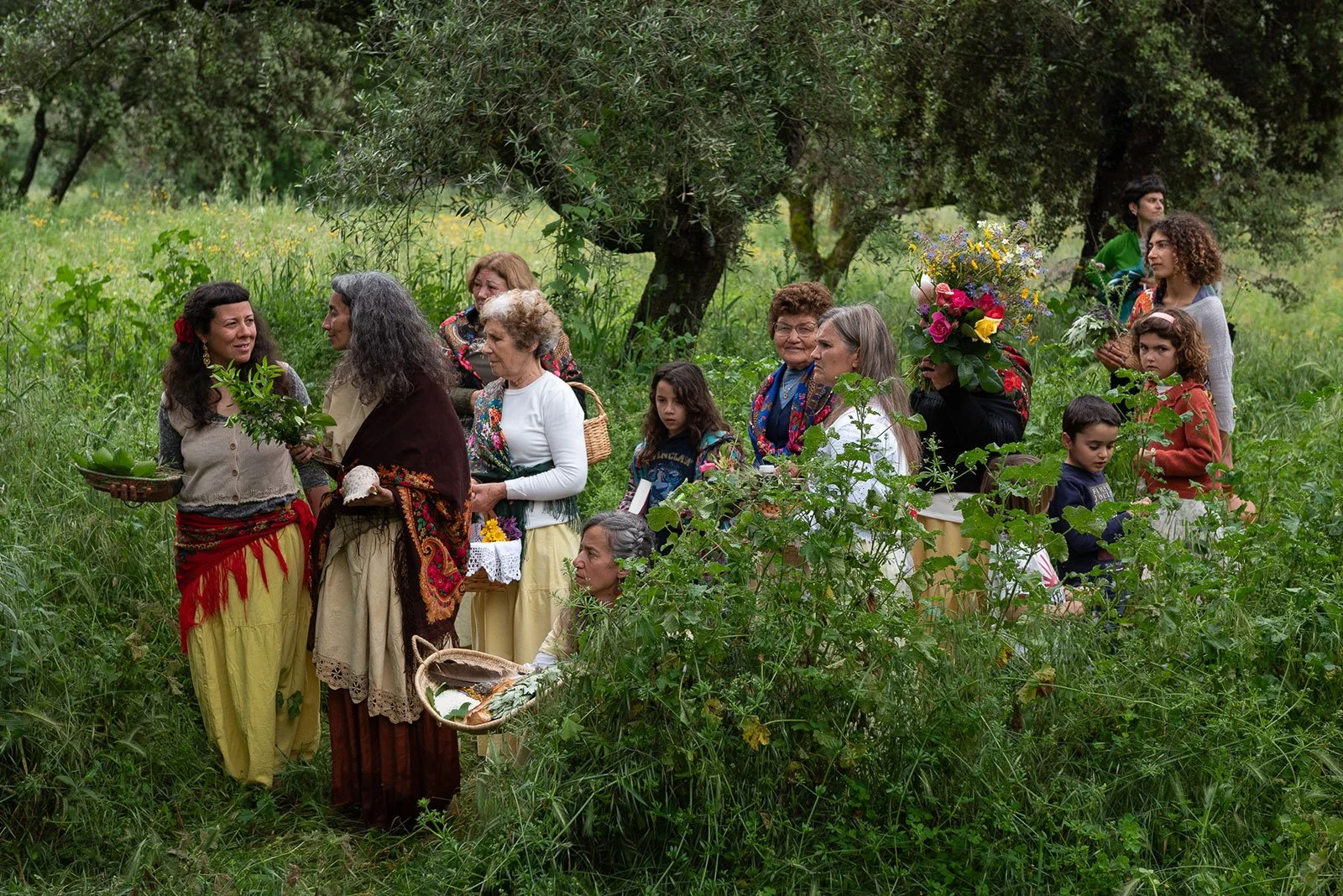A voz das senhoras de aqui e das meninas de lá, num louvar conjunto à terra que nos dá o fruto.
